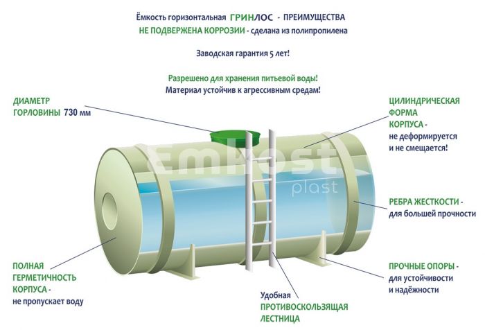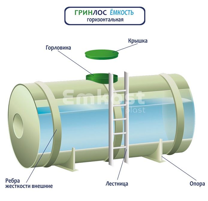 Характеристики ГРИНЛОС Емкость 12 м3 горизонтальная цилиндрическая наземная