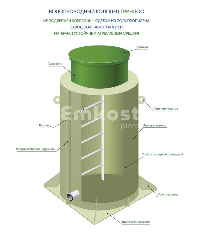 Доставка Водопроводный колодец ГРИНЛОС В 1200/1500