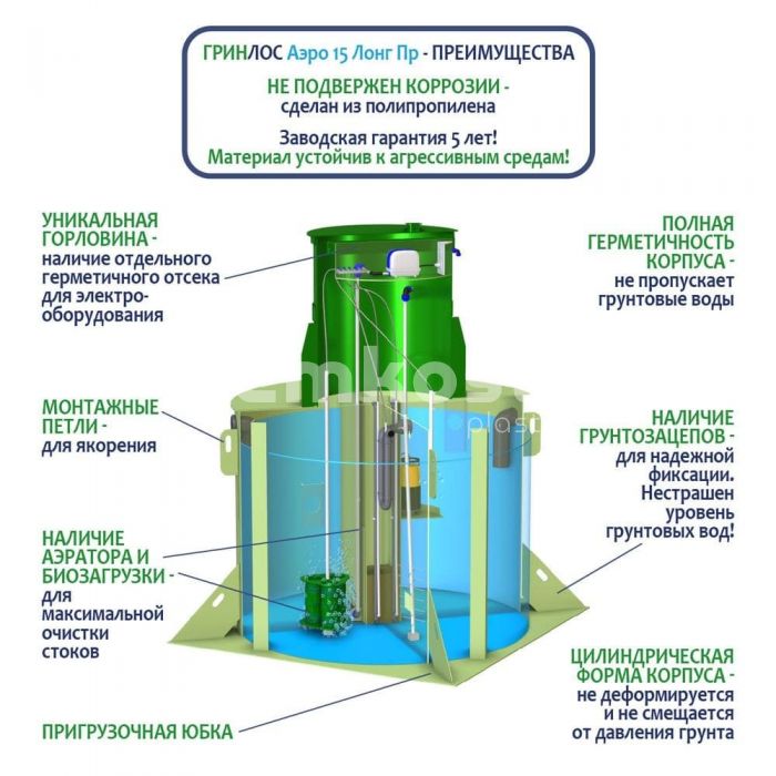 • Септик ГРИНЛОС Аэро 15 Пр Лонг