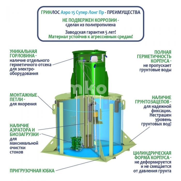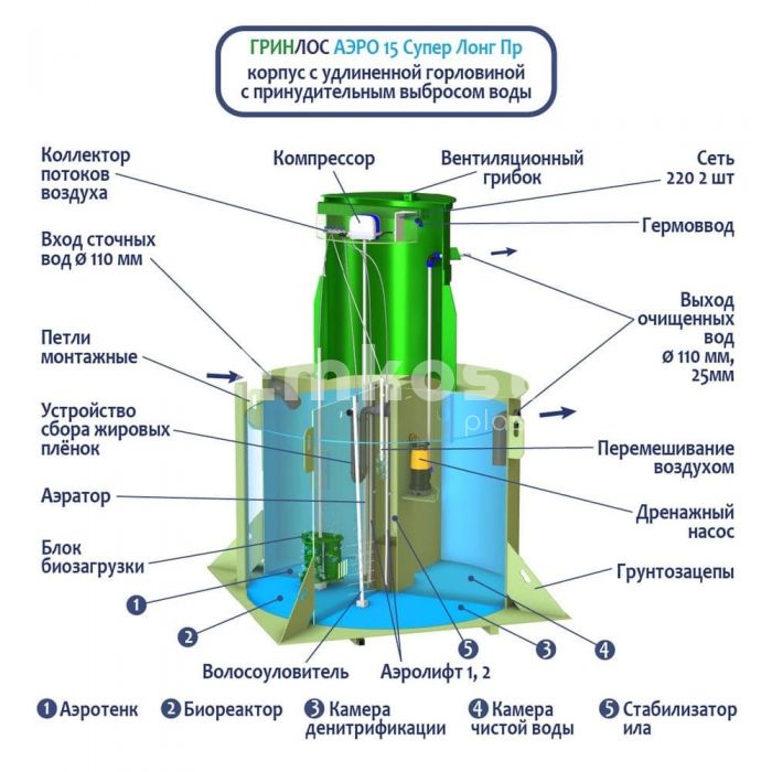 • Септик ГРИНЛОС Аэро 15 Пр Супер Лонг