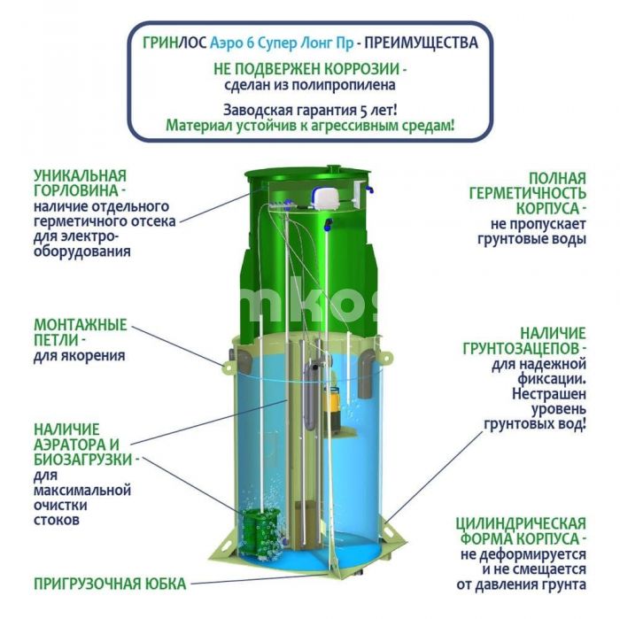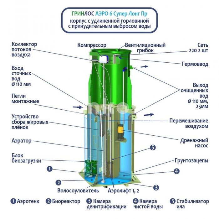 • Септик ГРИНЛОС Аэро 6 Пр Супер Лонг