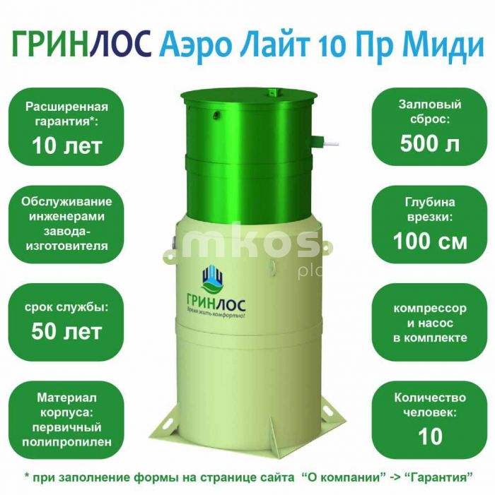 • Септик Гринлос Аэро Лайт 10 Пр Миди