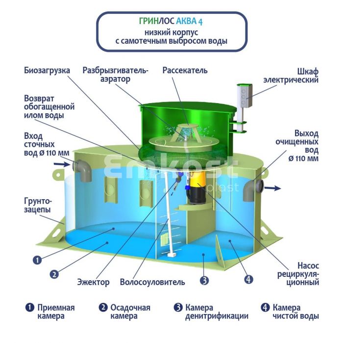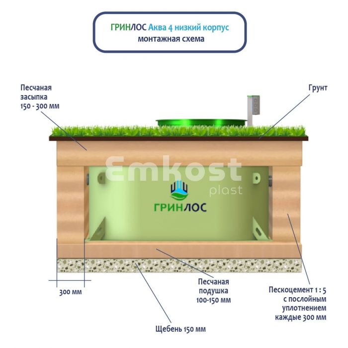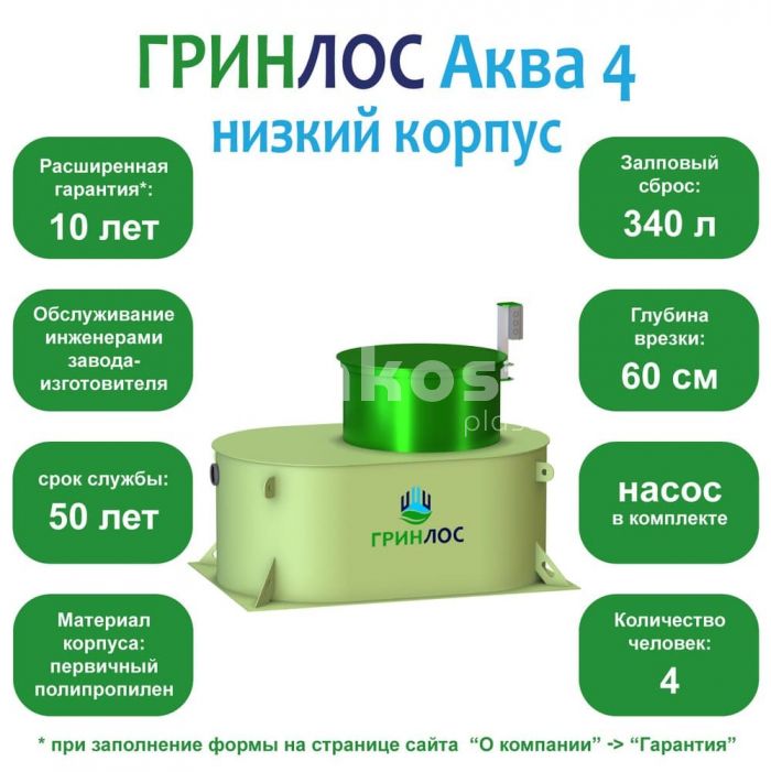• Септик ГРИНЛОС Аква 4 низкий корпус