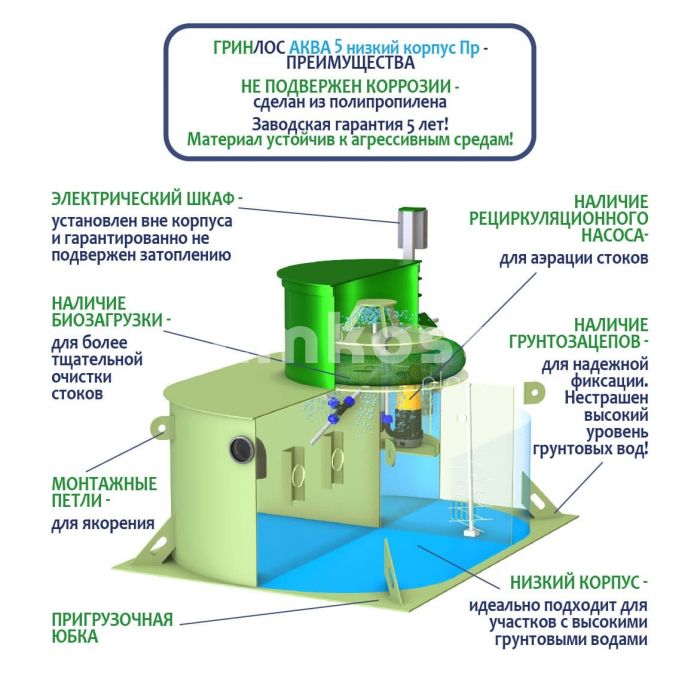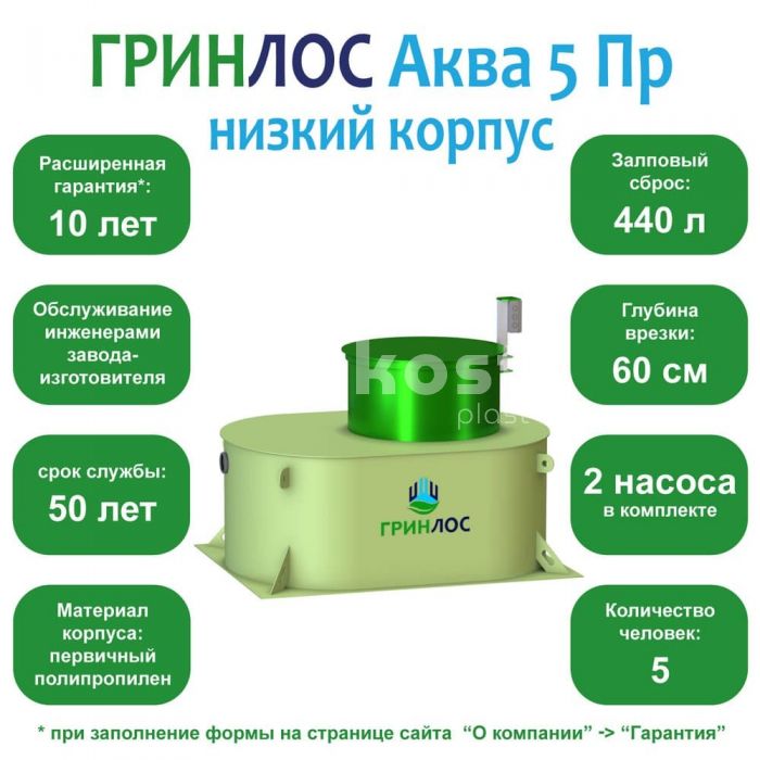 • Септик ГРИНЛОС Аква 5 низкий корпус Пр