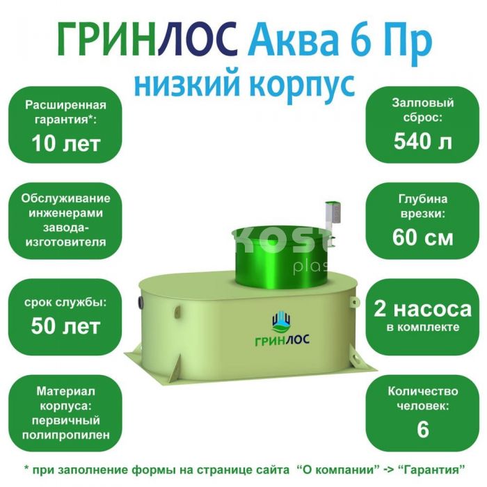 ГРИНЛОС Аква 6 низкий корпус самотечный 2.2х1.5х1.2 - 126 от 191 917 сом.