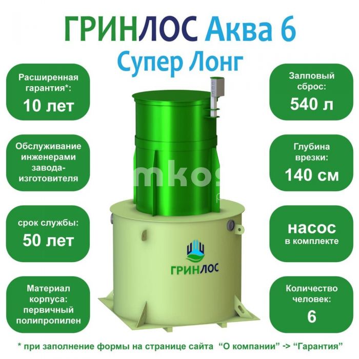 ГРИНЛОС Аква 6 Лонг самотечный 1.5х1.5х2.4 - 167 от 227 525 сом.