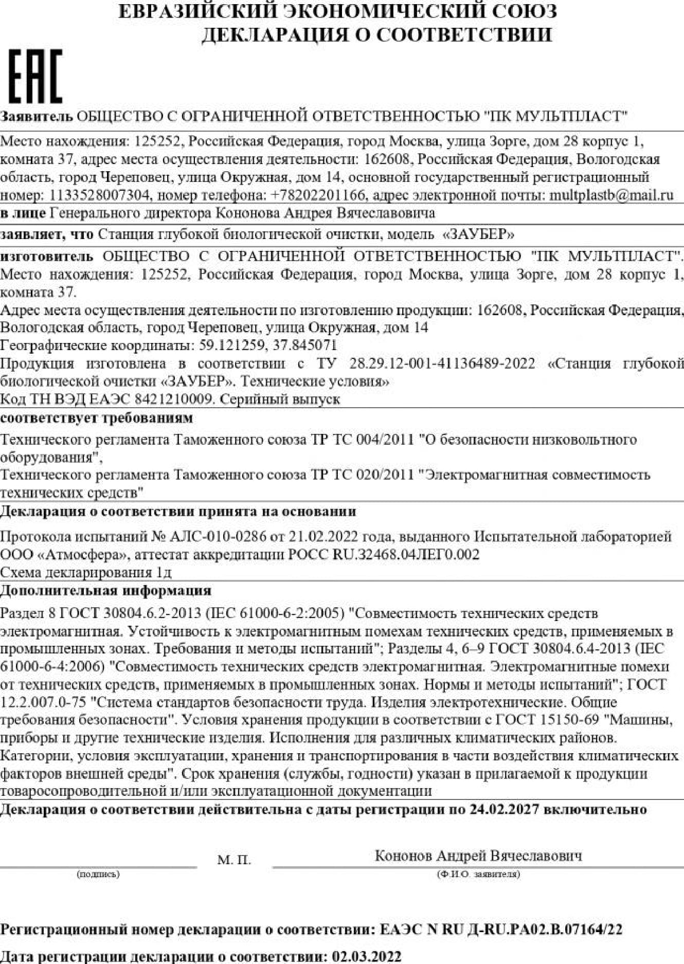 Установка септика Гринлос Эко 3